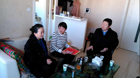 12月29日,市人大常委会秘书长马登岗、市妇联主席周超娟慰问人大机关职工郭文霞。