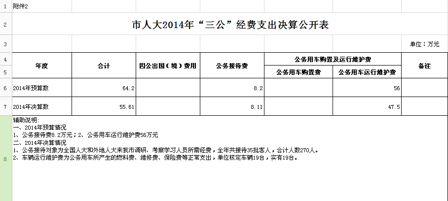 市人大2014年“三公”经费支出决算公开表