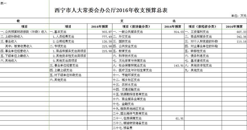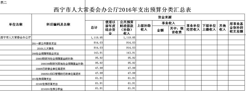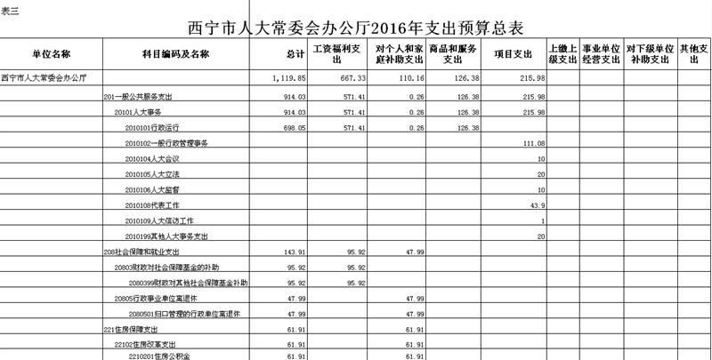 本表按功能分类科目编制,反映人大2016年度部门预算中所有支出用于基本支出和项目支出的总体情况。其中前三项反映基本支出预算安排情况。