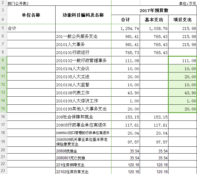 部门项目支出表