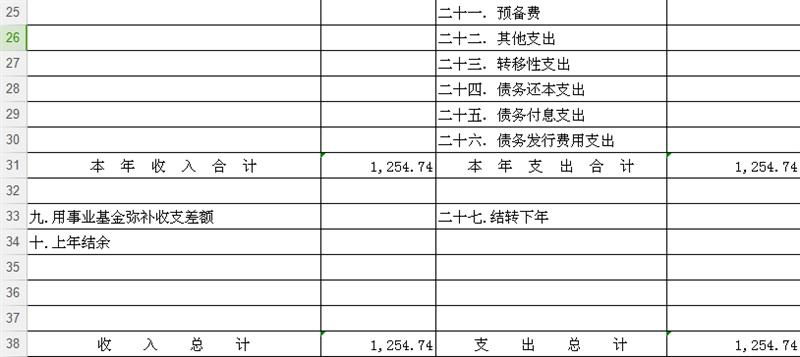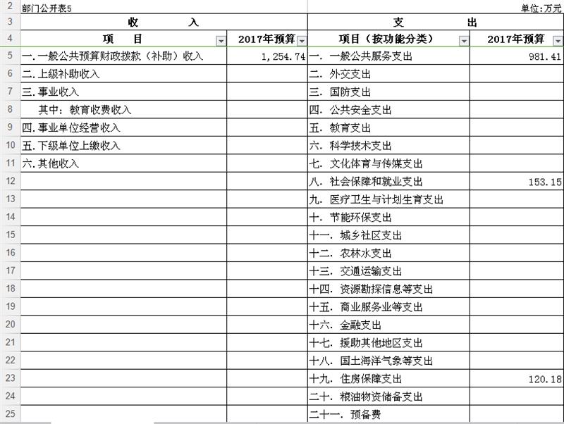 部门收支总表