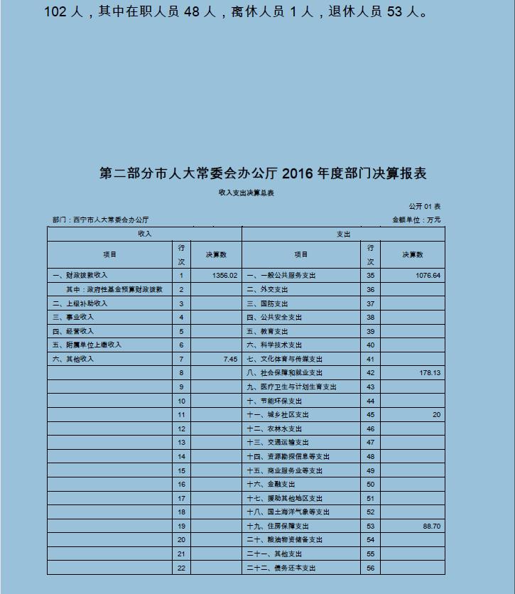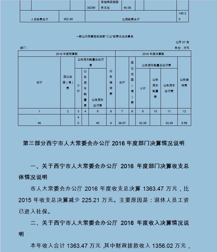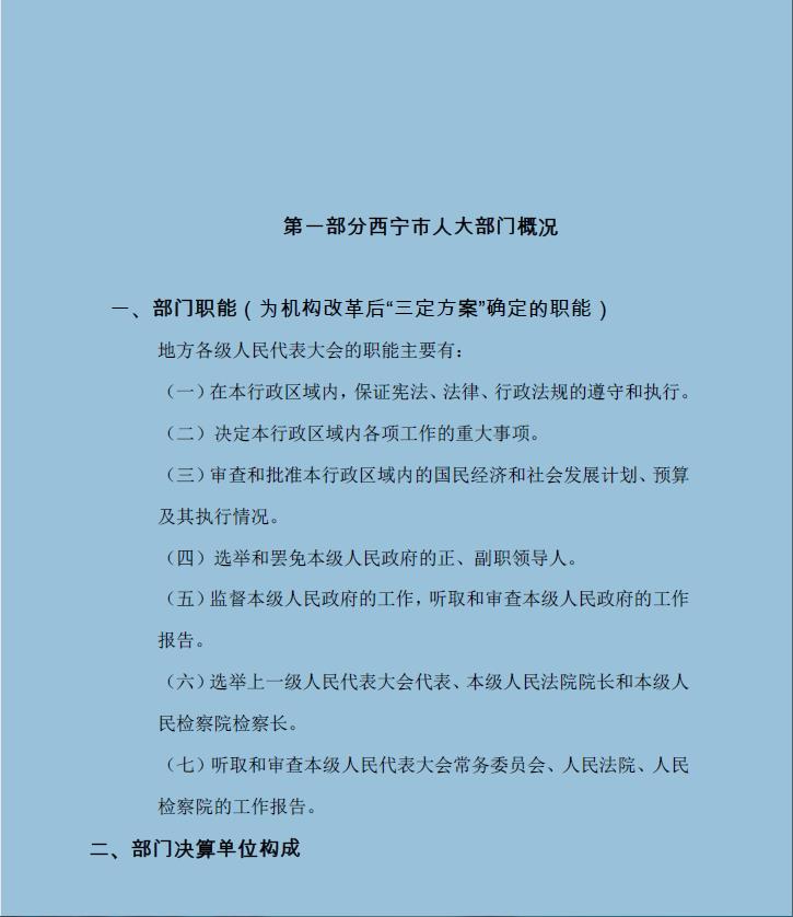 西宁市人大常委会办公厅2017年部门预算编制说明